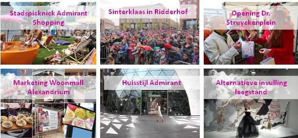 - Promotionele activiteiten welke zich richten op het trekken van extra bezoekers en het sterker binden van bezoekers aan het centrum. De focus ligt op een aantal events gedurende het jaar, waarbij per event vanuit een aanloopperiode wordt toegewerkt naar dat event. Bij de events wordt zo veel mogelijk getracht de ondernemers te activeren.